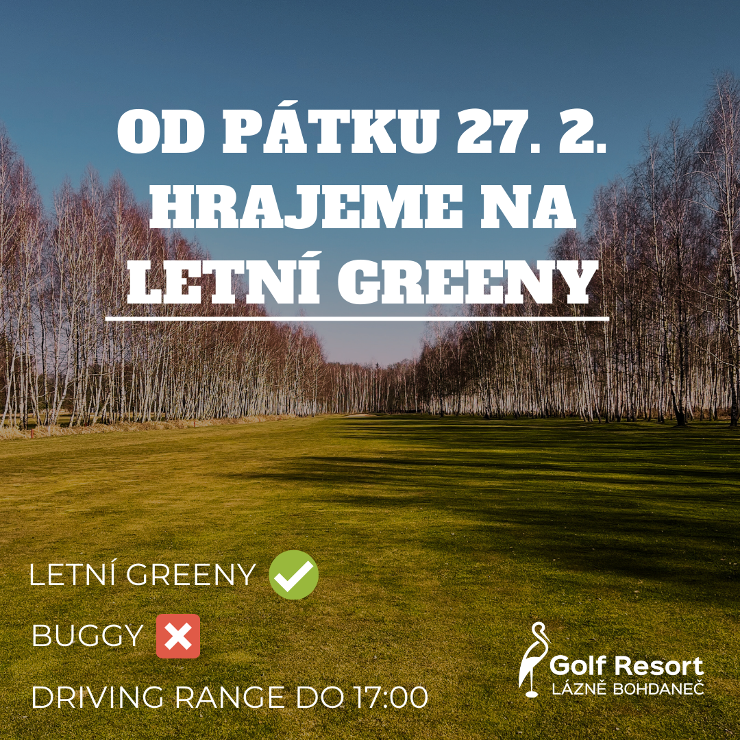 máme skvělou zprávu – konečně je to tu! Po dlouhé zimní pauze se znovu vracíme na hřiště. Už zítra, v pátek 27. 2., od 12:00 otevíráme letní greeny.
