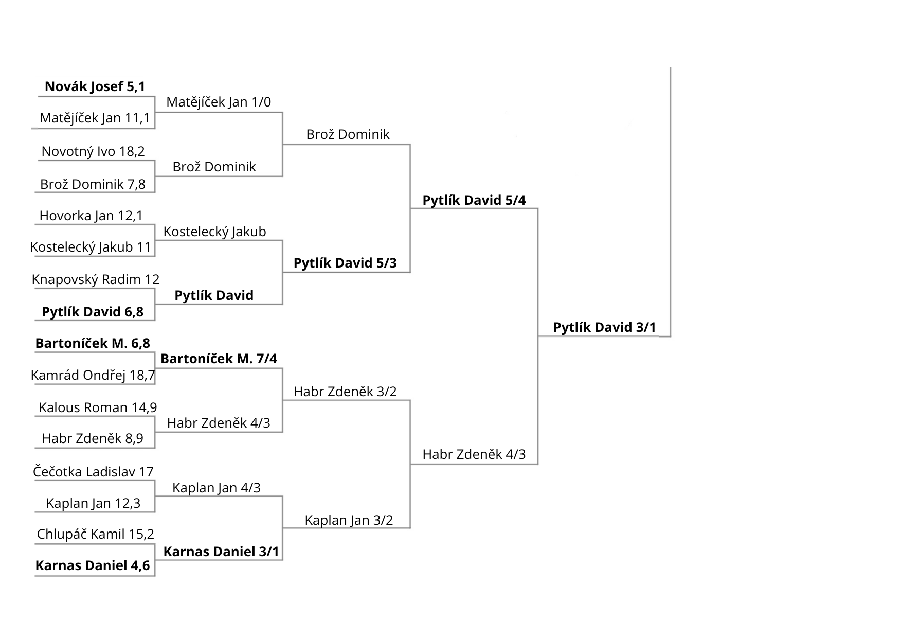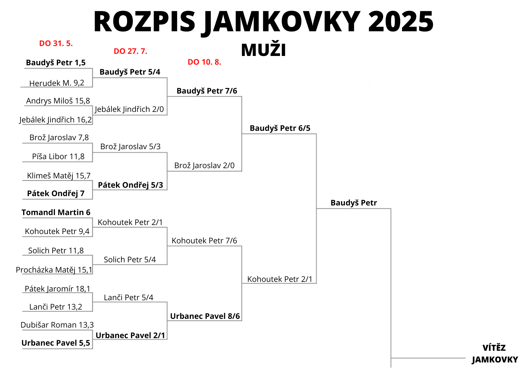 Průběžný pavouk bude vyvěšen na recepci klubu a po odehrání celého kola bude aktualizován zde na stránkách.