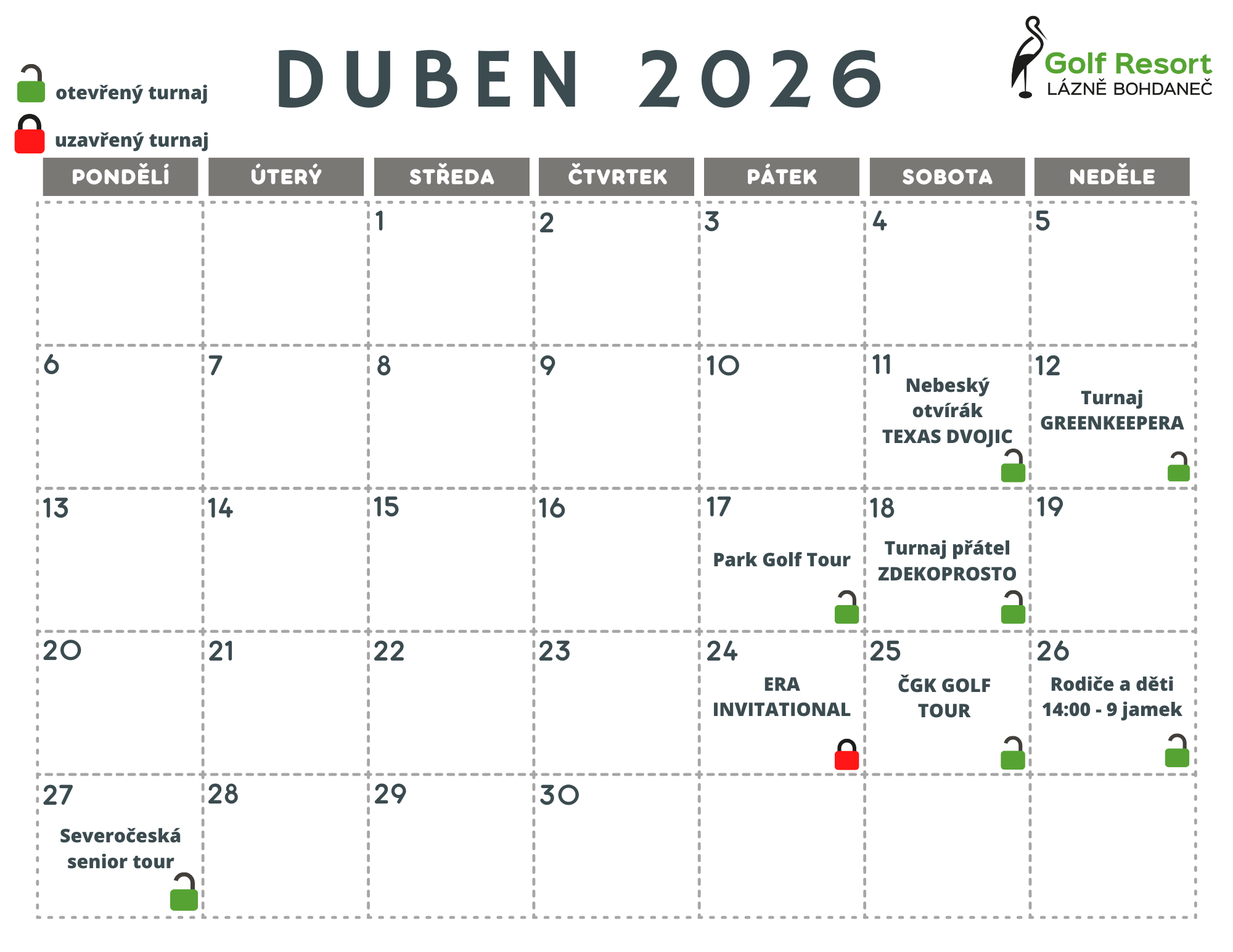 Turnaje s červeným zámečkem jsou turnaje uzavřené pro pozvané hráče. Dostupnost hracích časů mimo turnaj si vždy můžete ověřit na recepci nebo v aplikaci TÝČKO.