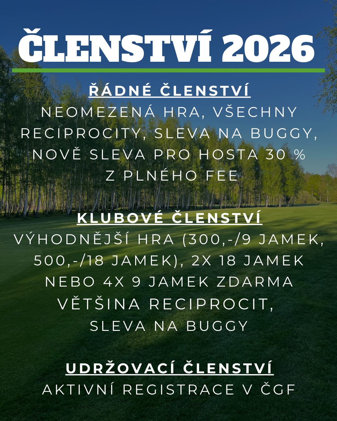 Volba pro hráče, kteří nevyužijí roční fee. Součástí je 4× 9 jamek nebo 2× 18 jamek ZDARMA a následně zvýhodněné fee 300 Kč / 9 jamek nebo 500 Kč / 18 jamek.