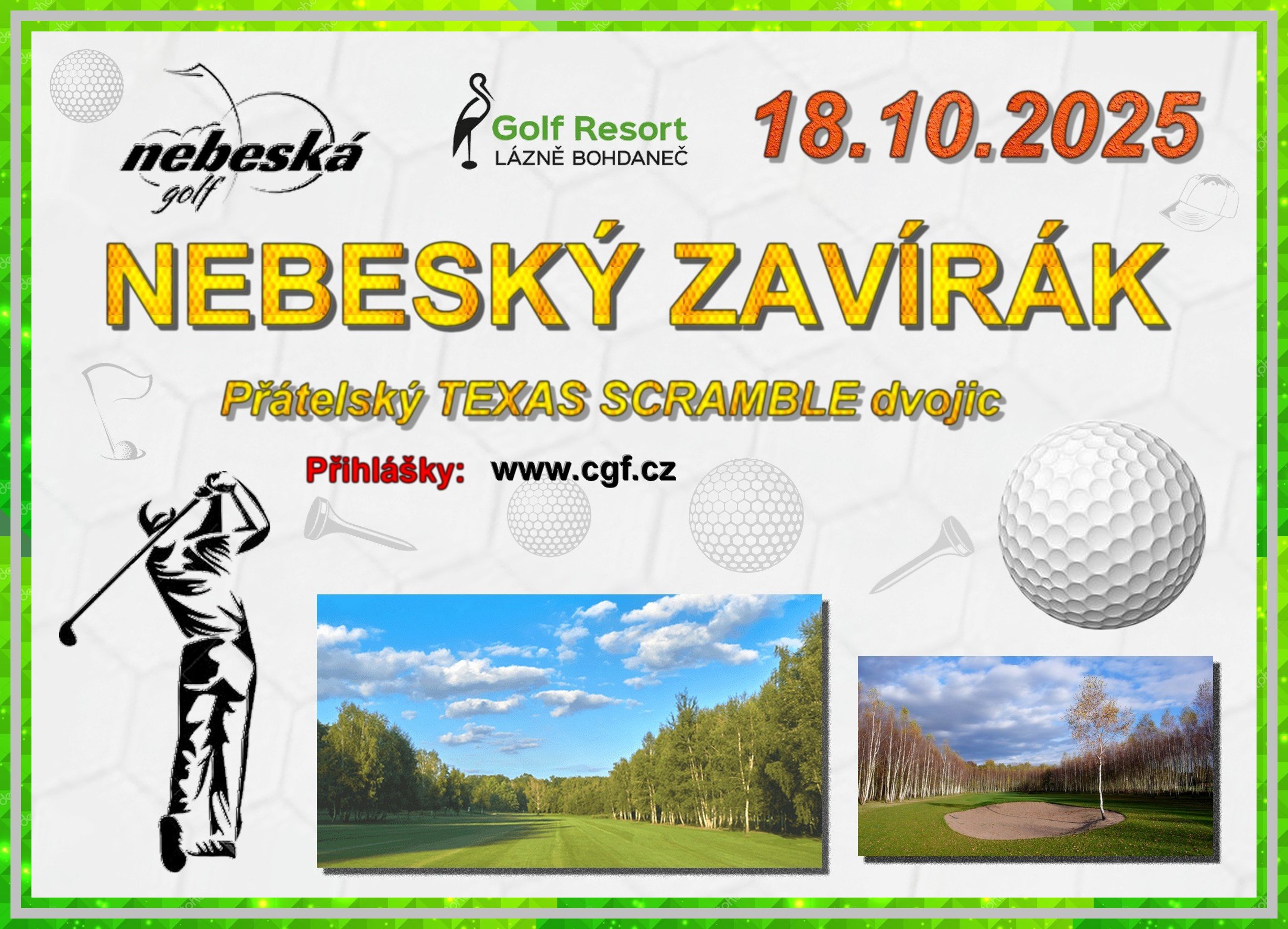 turnajová sezóna u nás v Bohdanči je stále v plném proudu a hřiště je stále ve skvělé kondici. Máme za sebou 7. ročník tradičního turnaje Oktoberfest a před sebou ještě další zajímavé turnaje. Za zmínku určitě stojí Nebeský zavírák - Texas Scramble dvojic 18. 10., Men Tour 25. 10. a v neposlední řadě turnaj 1. republika, který hrajeme každý rok na státní svátek 28. 10.